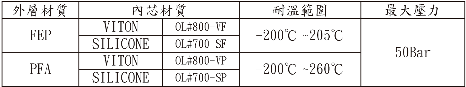 FEP - 考慮整體耐腐蝕性、密封能力和溫度時最通用的。